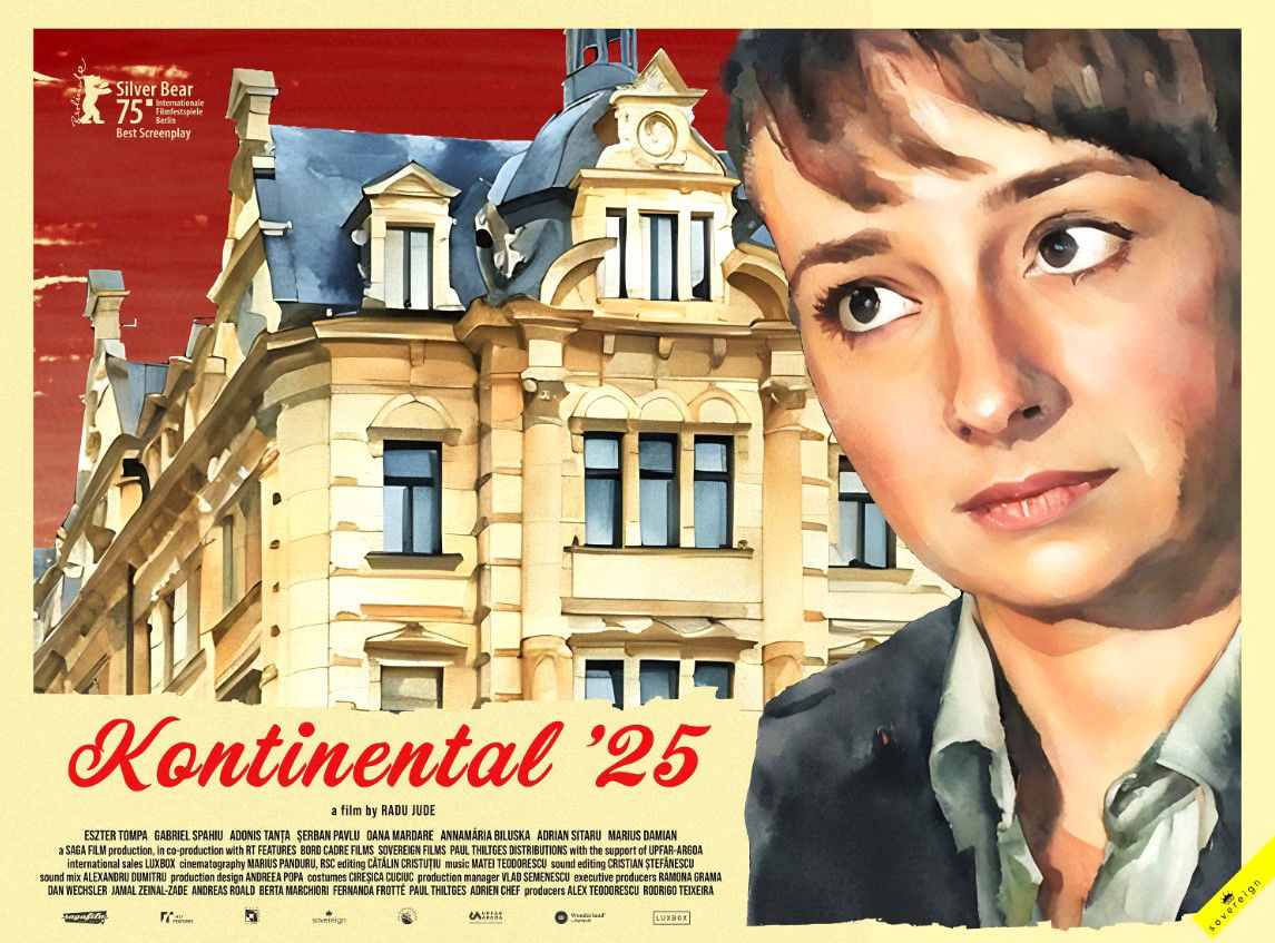 KONTINENTAL 25 (2025) Dirección y Guión: Radu Jude, Elenco: Eszter Tompa, Gabriel Spahiu, Serban Pavlu, Adrian Sitaru y Ilinca Manolache, Música: Matheu Teodorescu, Fotografía: Marius Panduru, Duración: 109’ - Color