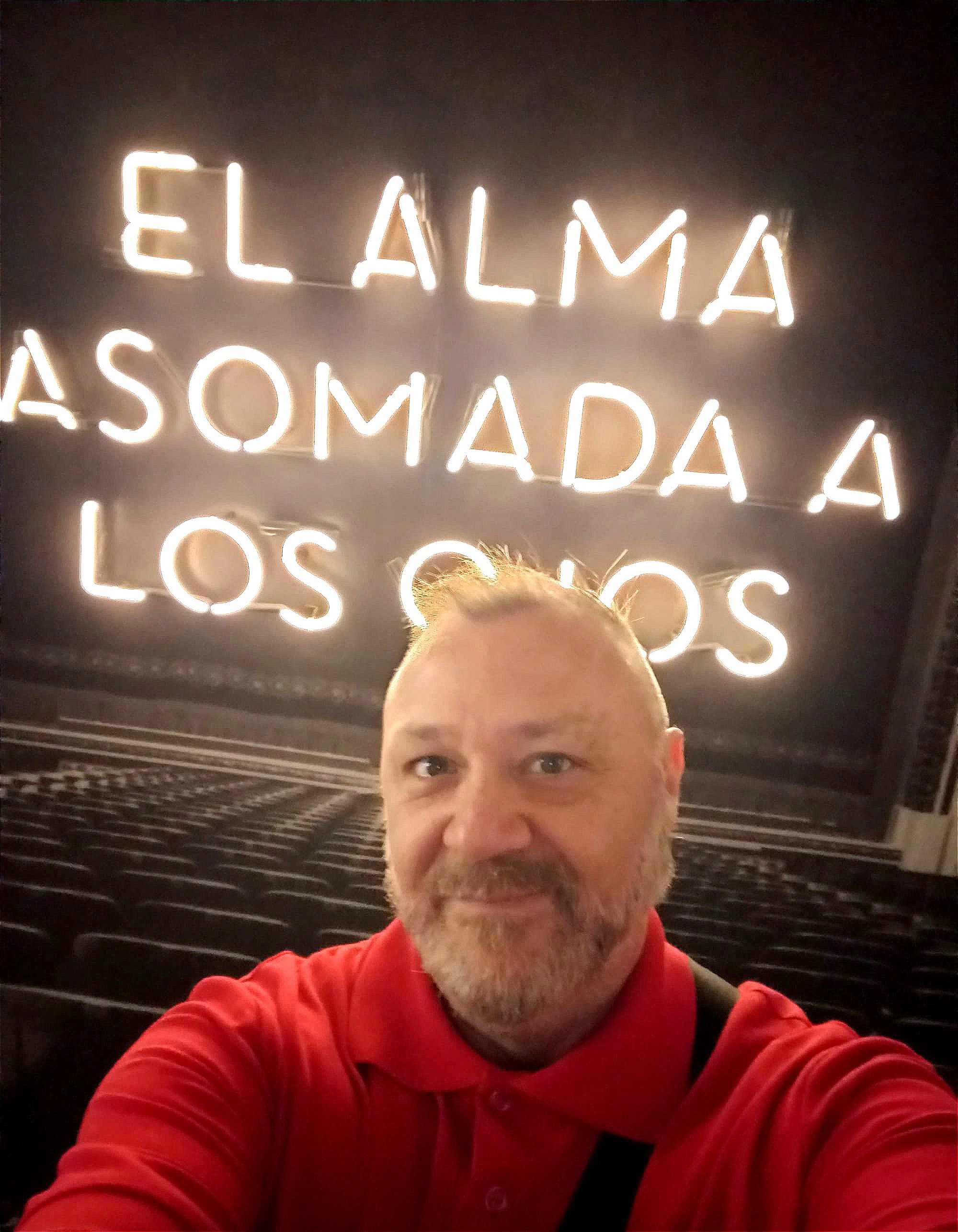 Al finalizar la visita les recomiendo que se tomen una fotografía en esta imagen en blanco y negro que evoca una sala de cine de la década del 40. Sobre ella la leyenda en neones que dice "El alma asomada a los ojos" es la mejor metáfora que identifica lo que significó el recorrido por la muestra. El cine es magia: y el alma, así lo presiente.