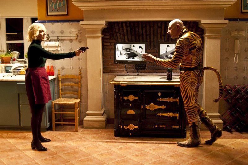 El primero que aparece y que sorprende es el recorrido de cámara sobre la figura de Antonio Banderas antes de ingresar en la habitación de Vera, la cual remite instantáneamente a aquella de Átame, donde él interpretaba a un desquiciado con aires sadomasoquistas que tenía a Victoria Abril de rehén en una habitación con el propósito de enamorarla.