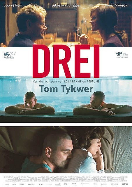 DREI (2010. Alemania) Director: Tom Tykwer, Elenco: Sophie Rois, Devid Striessof, Angela Winkler, Sebastian Schieper. Guión: Tom Tykwer, Música: Reinhold Heild, Gabriel Isaac Munsey. Duración 110´, Color.