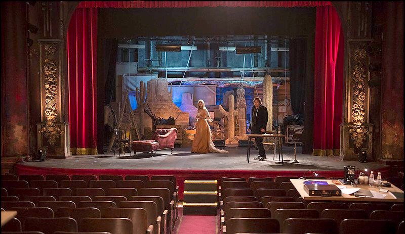 Lo cierto es que luego de haber pasado por tediosas audiciones esa mujer no apareció (por esa ironía del destino que dice que nunca las cosas suceden como se las piensa) y el director, ya derrumbado por la desilusión de ver un nuevo proyecto frustrado, en la primera escena, se prepara para abandonar el oscuro escenario de un teatro mediocre en una tormentosa noche parisina.