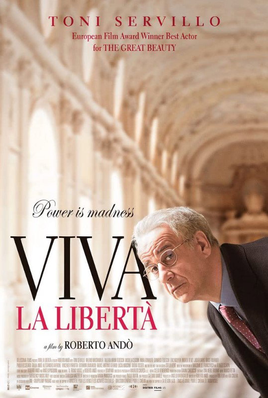 VIVA LA LIBERTÁ (2013, RAI- Italia), Dirección: Roberto Andó, Elenco: Toni Servillo, Valerio Mastandrea, Valeria Bruni Tedeschi, Michela Cescon, Anna Bonaiuto, Judith Davis. Guión: basado en la obra homónima de Roberto Andó, Fotografía: Maurizio Calvesi (94´-Color).