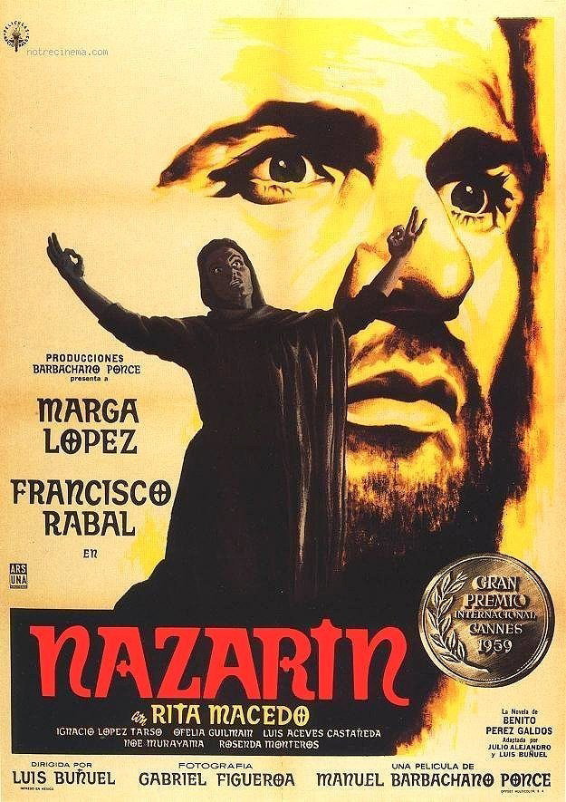 NAZARÍN (México, 1958) Dirección: Luis Buñuel, Elenco: Marga López, Francisco Rabal, Rita Macedo, Ignacio López Tarso, Ofelia Guilmáin y David Reynoso. Basada en la novela homónima de Benito Pérez Galdós. Adaptación cinematográfica: Julio Alejandro y Luis Buñuel. (Blanco y Negro, Duración: 95 Min.)